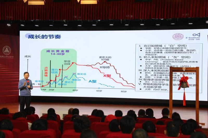郑泉水以其深厚的学术造诣和敏锐的洞察力,从数智时代三个主要阶层的分化——创新者、智能机器人、被技术淘汰的“边缘人”这一视角切入,深刻剖析了教育领域即将迎来的历史性转折。他提出,创生教育是一种以内生创新动力为核心,驱动个人全面发展的新型教育模式。通过生动的案例和深入浅出的讲解,郑院士不仅阐述了零一模式、零一生态、零一培养等前沿理念,还详细介绍了零一学院如何利用X-Challenge这一创新平台,实现人才选拔与进阶研究的对接,为同学们打开了一扇通往未来教育的大门。