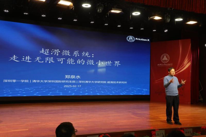 短暂的课间休息后,新学期第二节课继续开讲。第二节课,郑泉水围绕“超滑微系统:走进无限可能的微小世界”这一主题,与同学们做了更深入的交流。他通过讲授更专业的“零摩擦”与“自超滑”知识,同时结合自身的科学研究经历和成长经历,生动地为同学们进行讲解,更以科学家精神为实验学子树立了精神坐标,进一步激发了大家的学习兴趣,提升了同学们的专业水平。现场气氛热烈非凡,同学们纷纷表示受益匪浅。